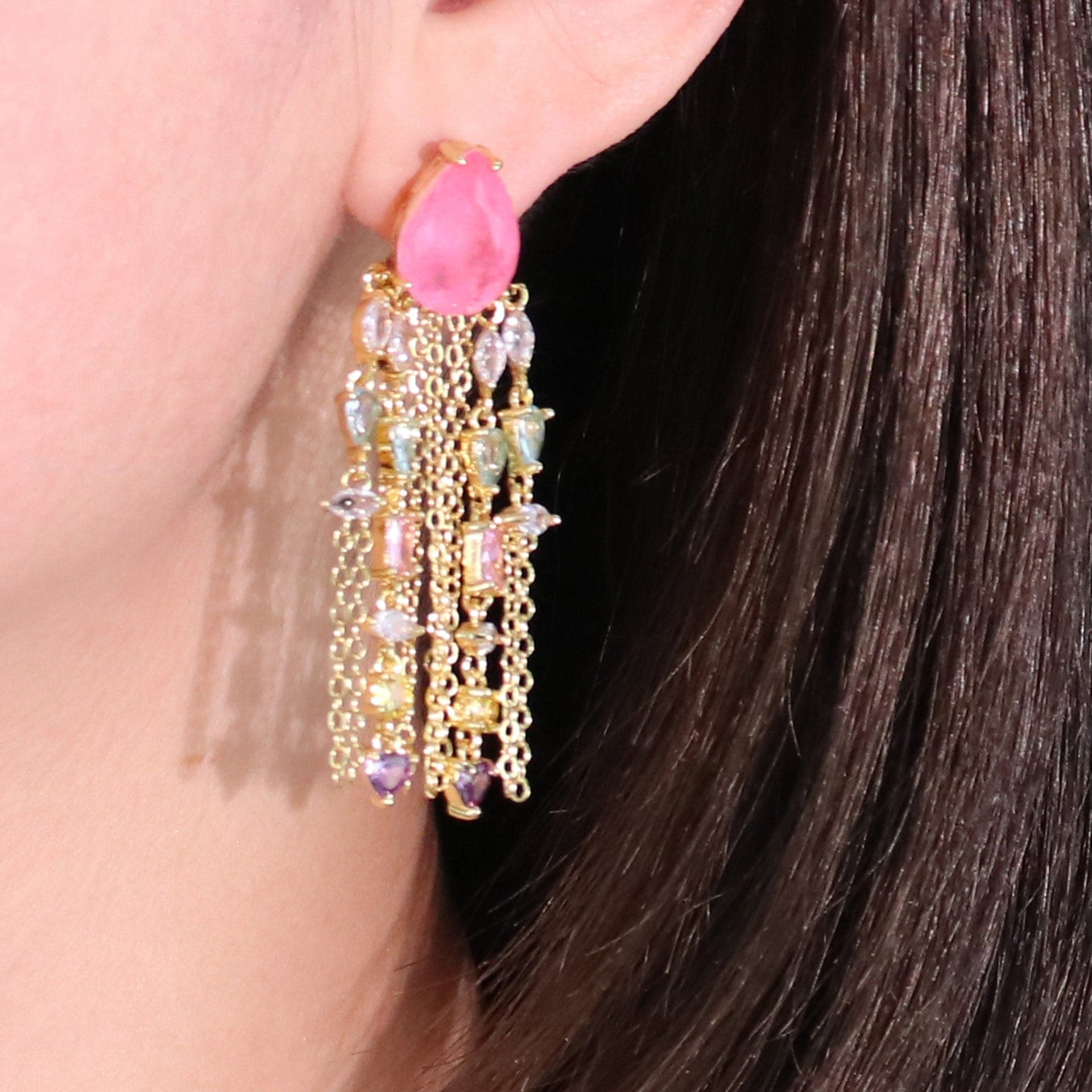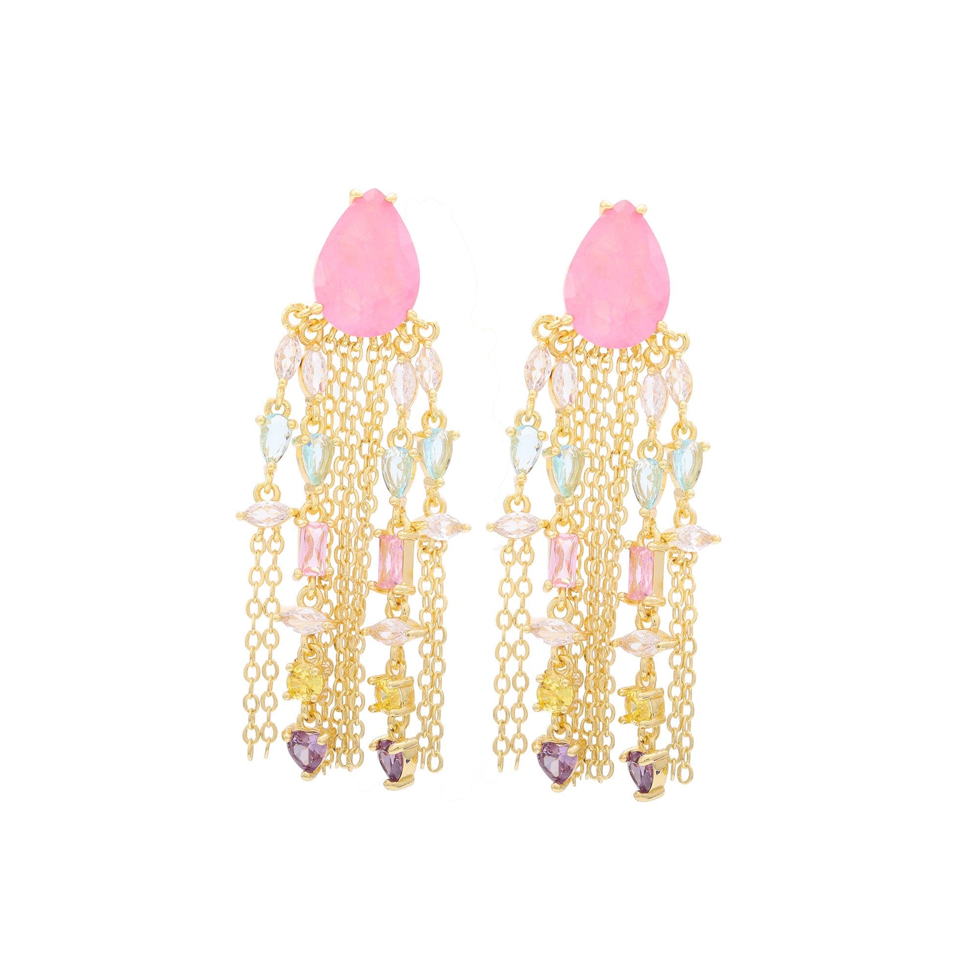 Brinco em latão de alta fusão cravejado manualmente com zircônia 5A premium, fusion e nas opções de banho Ouro 18k, Ródio branco .