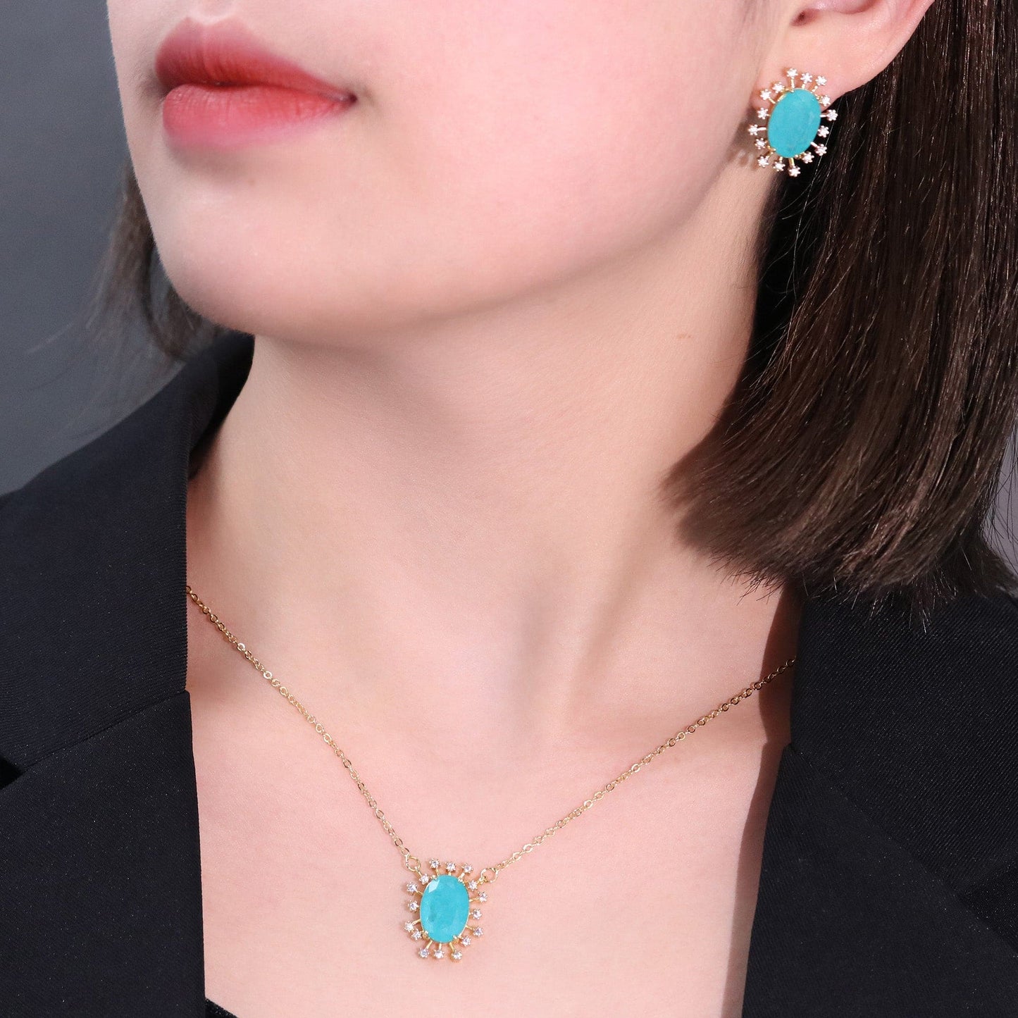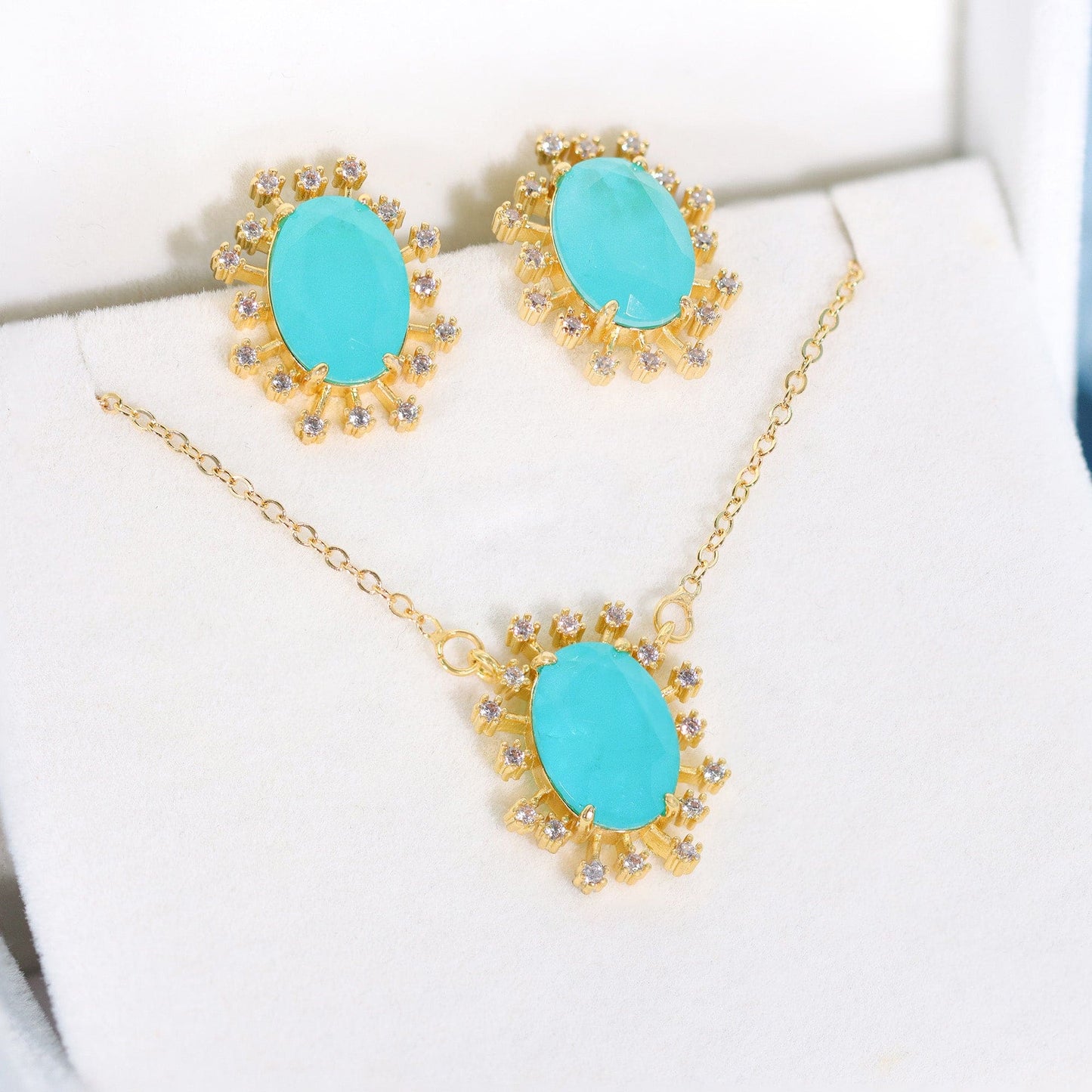 Material: Banho de Ouro 18k/Cristal+Azul - 黄金电镀-白+蓝