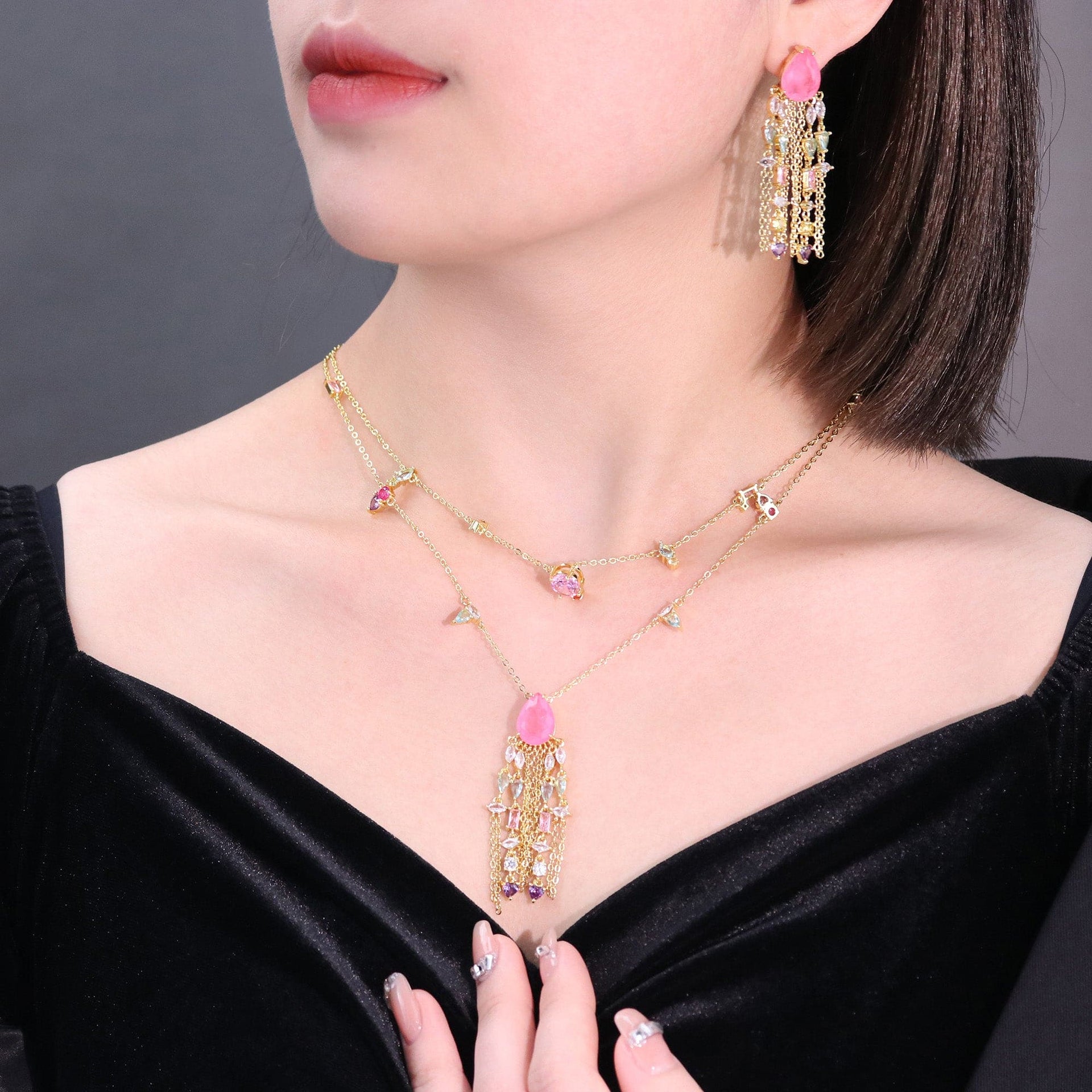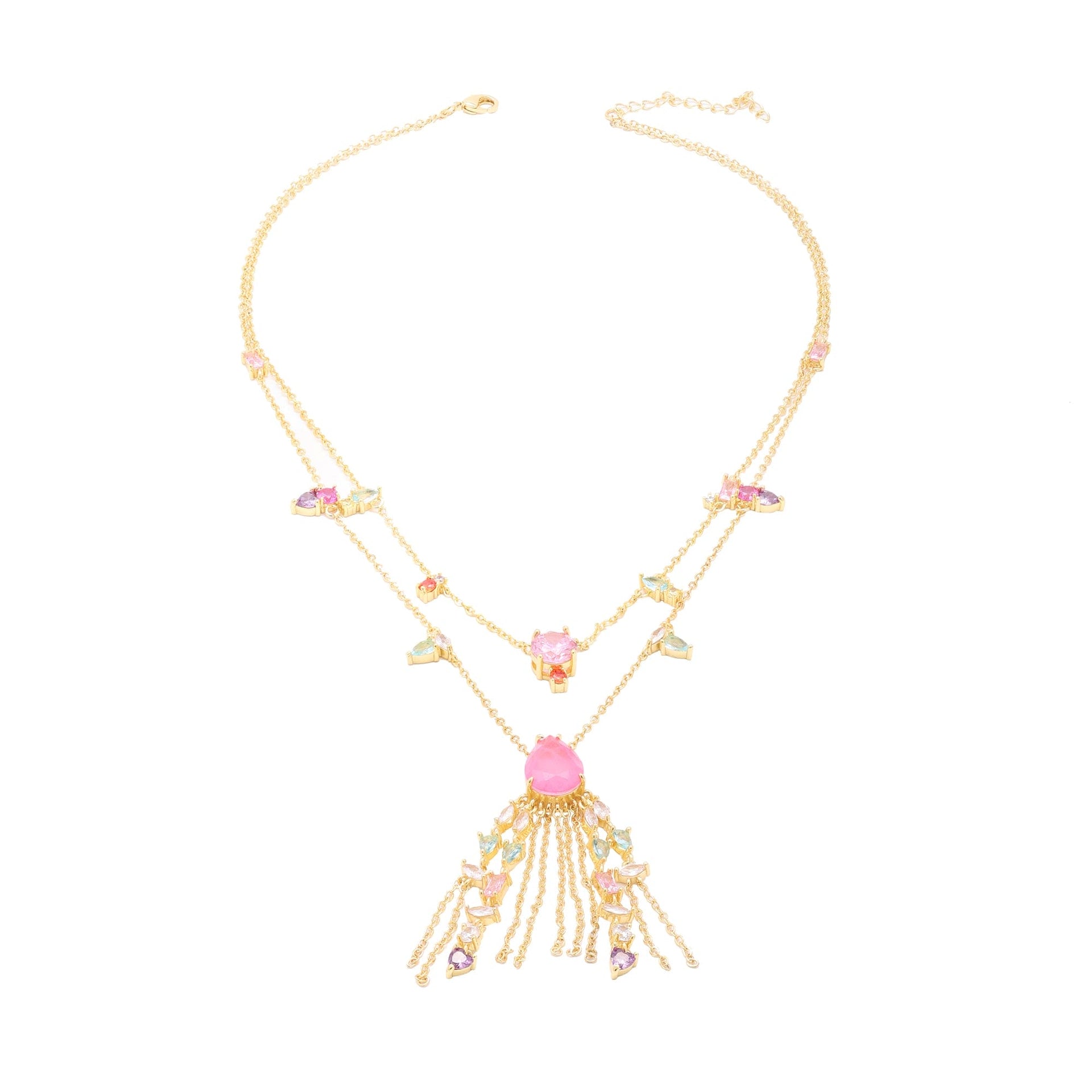 Colar em latão de alta fusão cravejado manualmente com zircônia 5A premium, fusion e nas opções de banho Ouro 18k, Ródio branco .