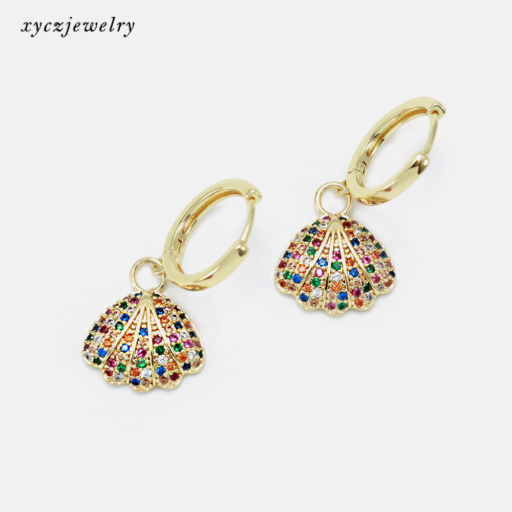 DESC Brinco argolinha concha cravejada XYE103651 耳环