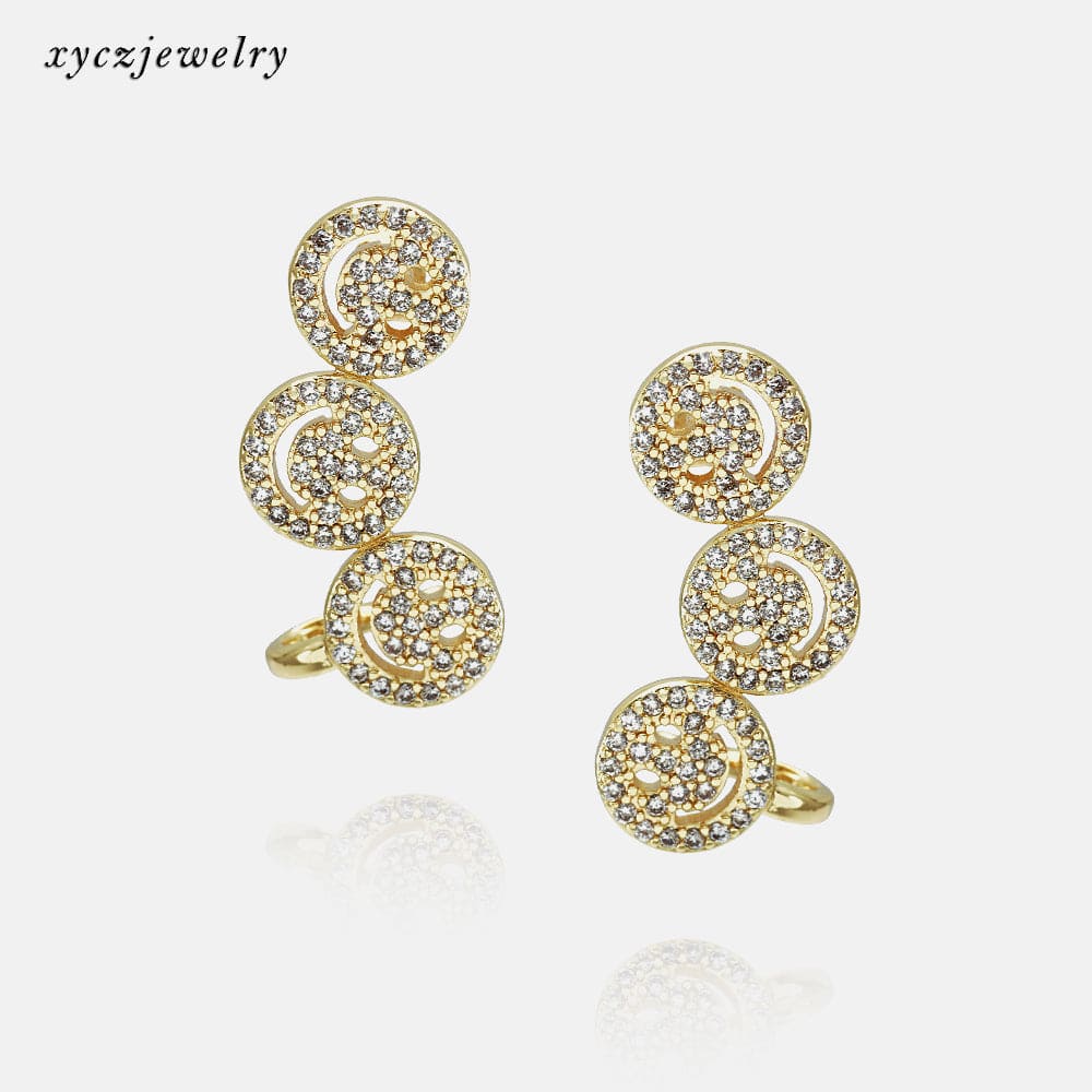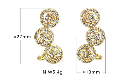 Brinco em latão de alta fusão cravejado manualmente com micro zircônia 5A Premium, nas opções de banho Ouro 18k, Ródio branco ou Bruto.