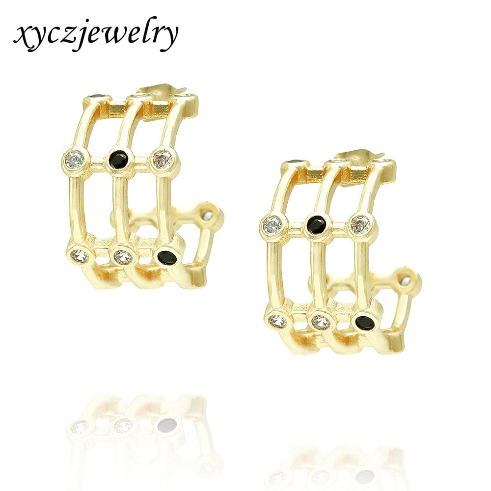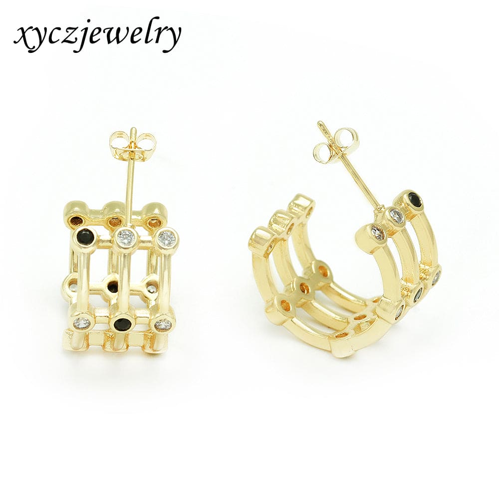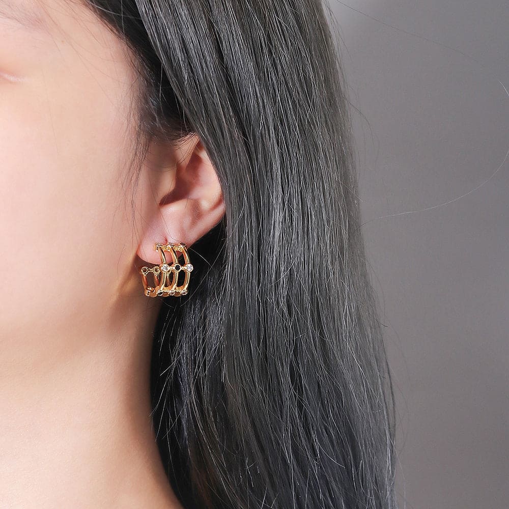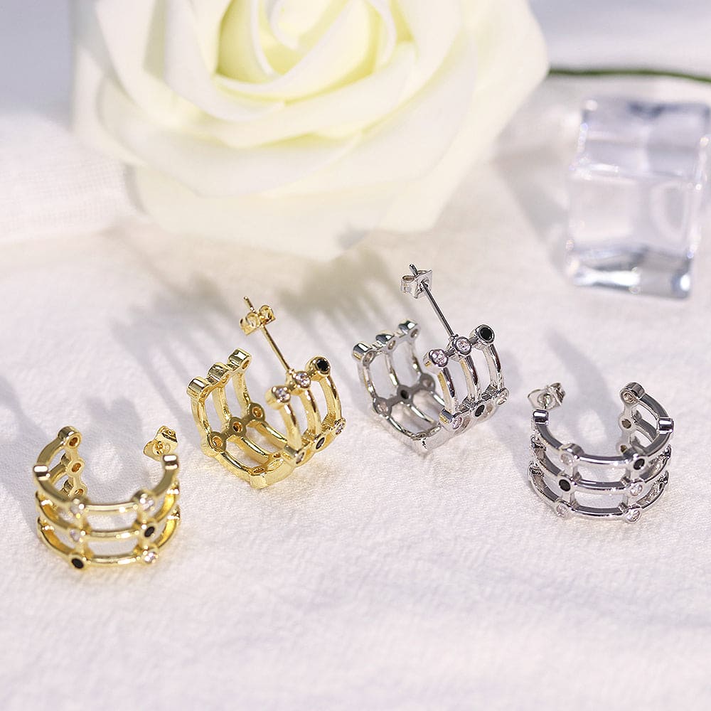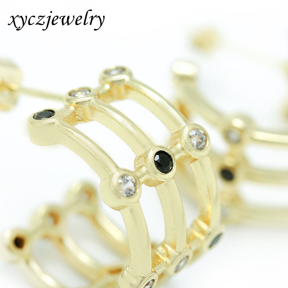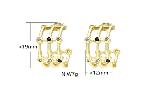 Argola em latão de alta fusão cravejado manualmente com micro zircônias 5A, nas opções de banho Ouro 18k, Ródio branco ou Bruto.