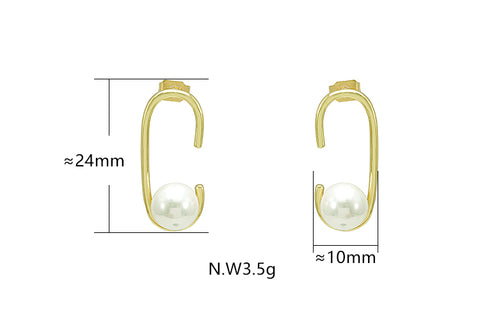 Brinco em latão de alta fusão polido manualmente com pérola , nas opções de banho Ouro 18k, Ródio branco ou Bruto.