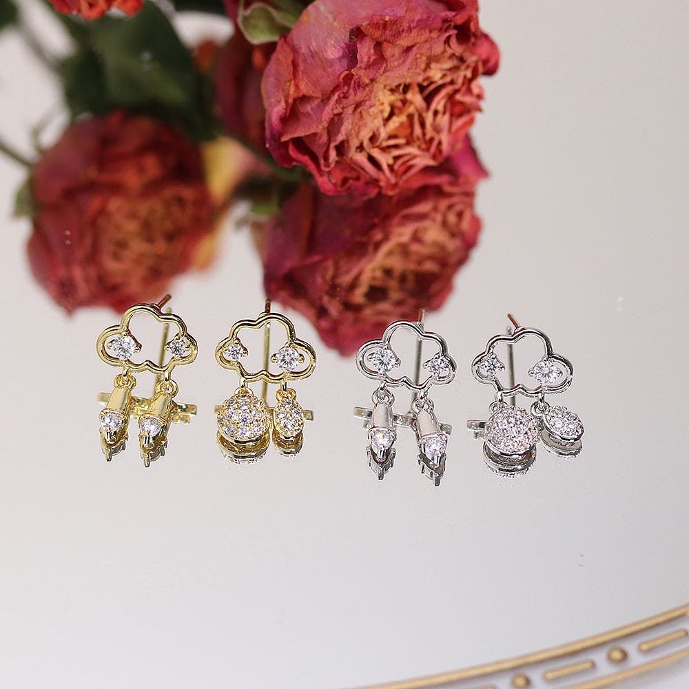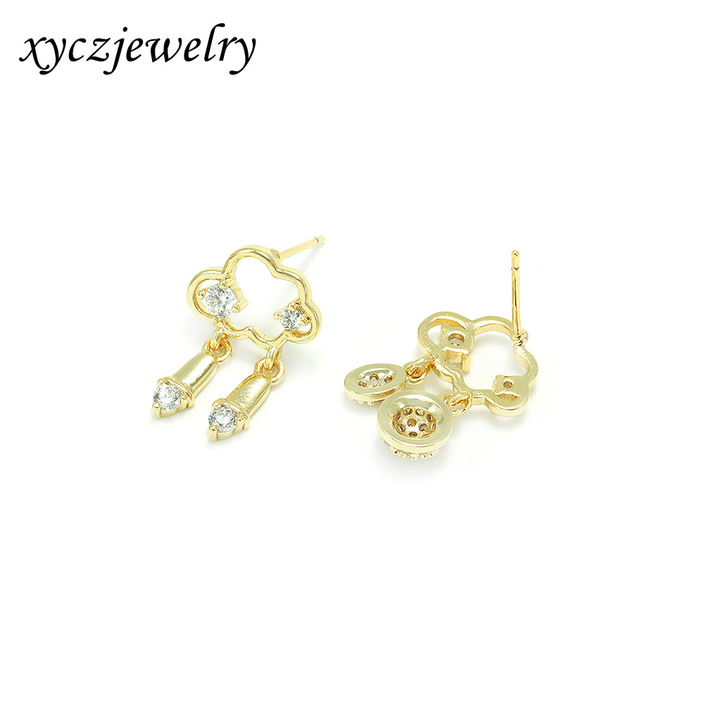 Brinco em latão de alta fusão cravejado manualmente com micro zircônia 5A Premium, nas opções de banho Ouro 18k, Ródio branco ou Bruto.
