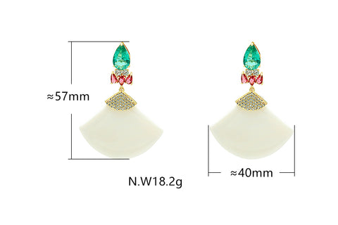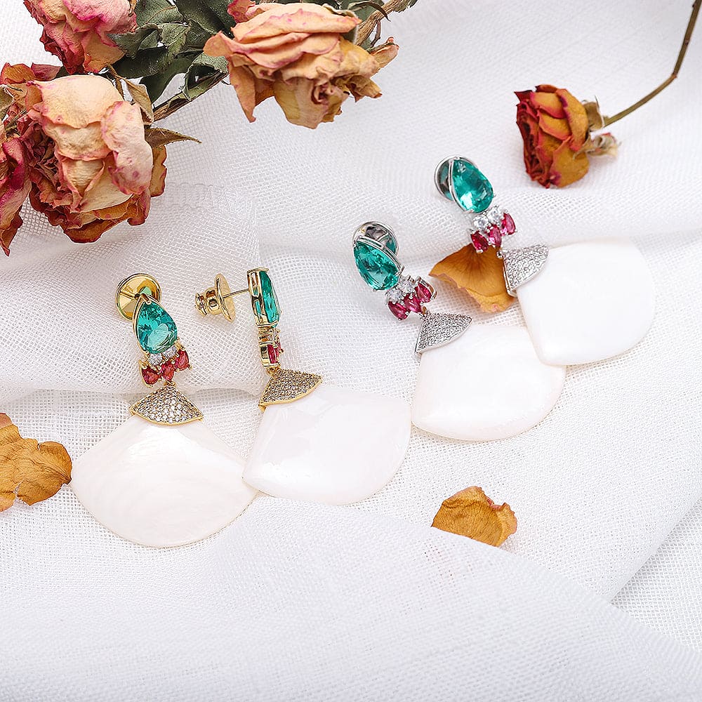 Brinco em latão de alta fusão cravejado manualmente com micro zircônia 5A e vidro lapidado, nas opções de banho Ouro 18k, Ródio branco ou Bruto.