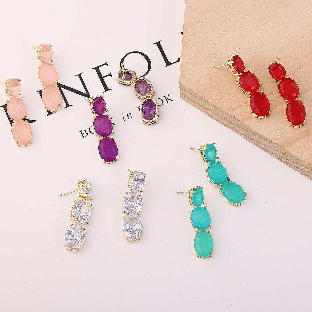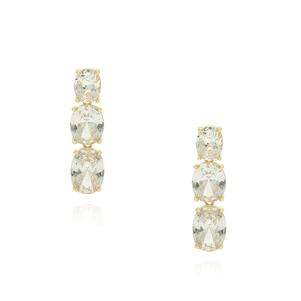 Brinco em latão de alta fusão cravejado manualmente com pedra fusion, nas opções de banho Ouro 18k, Ródio branco ou Bruto.