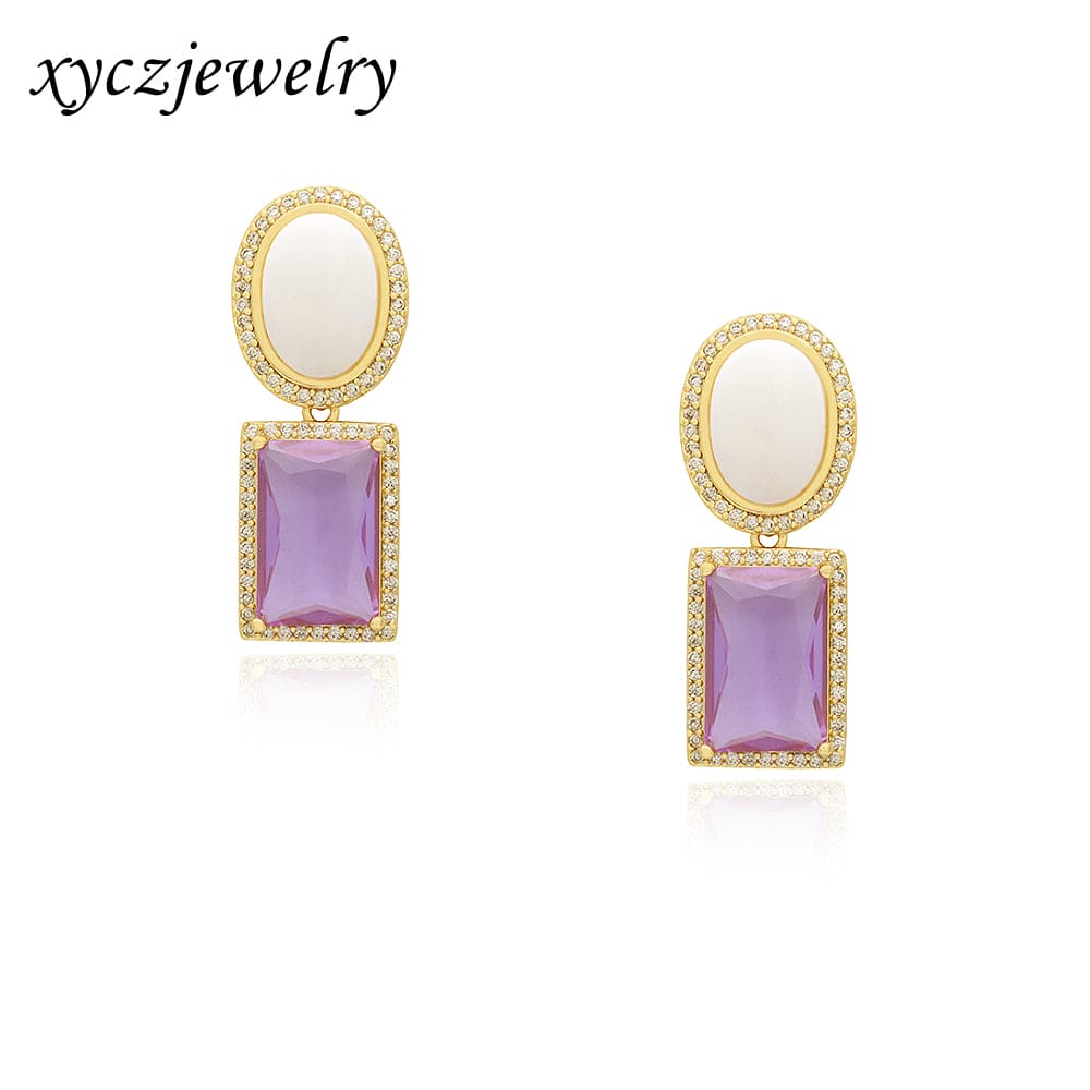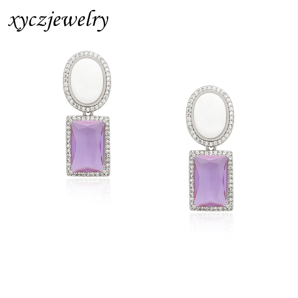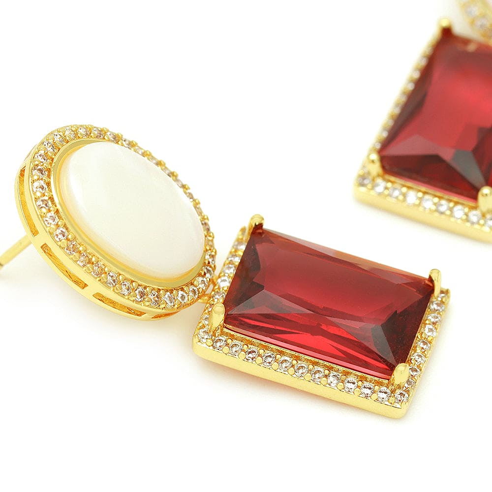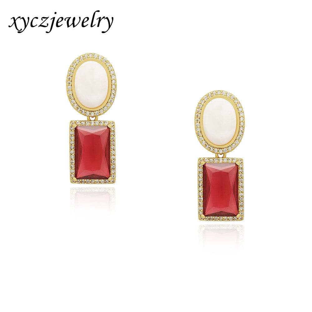 Pedra: Micro zirconia cristal, vidro lapidado em formato de carrê vermelho ou roxo e madrepérola