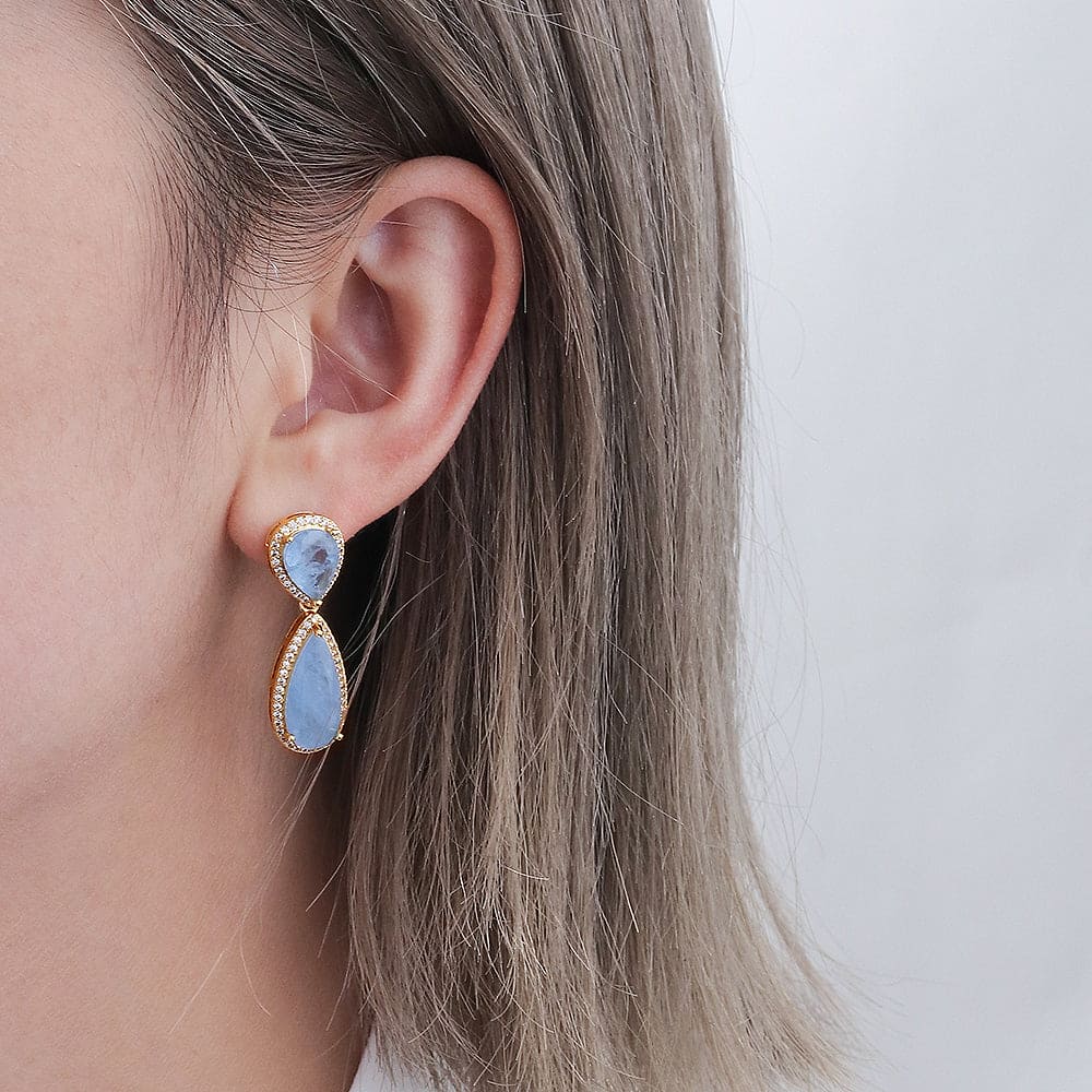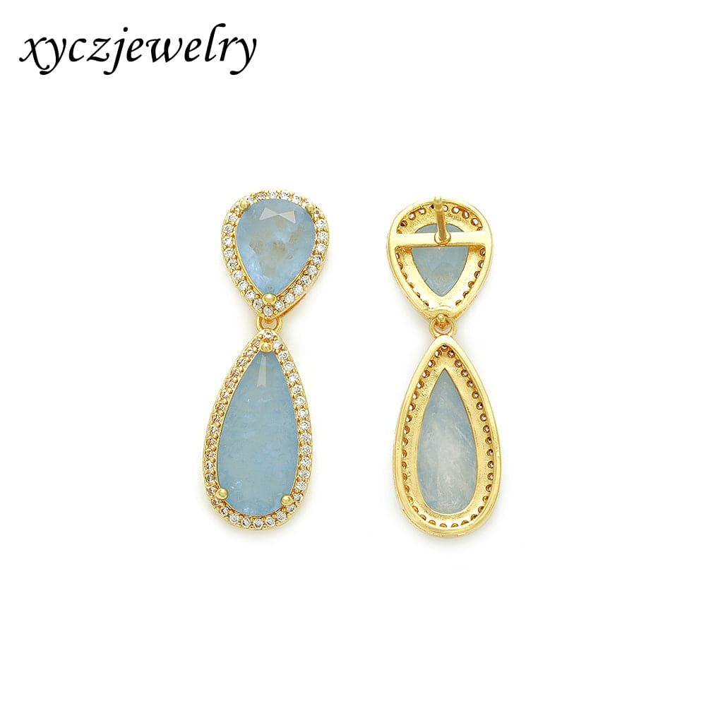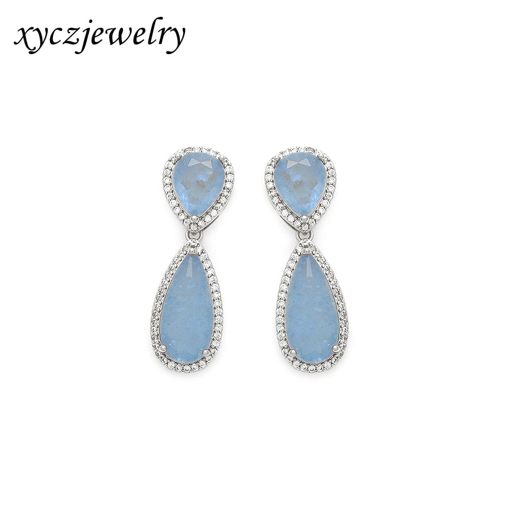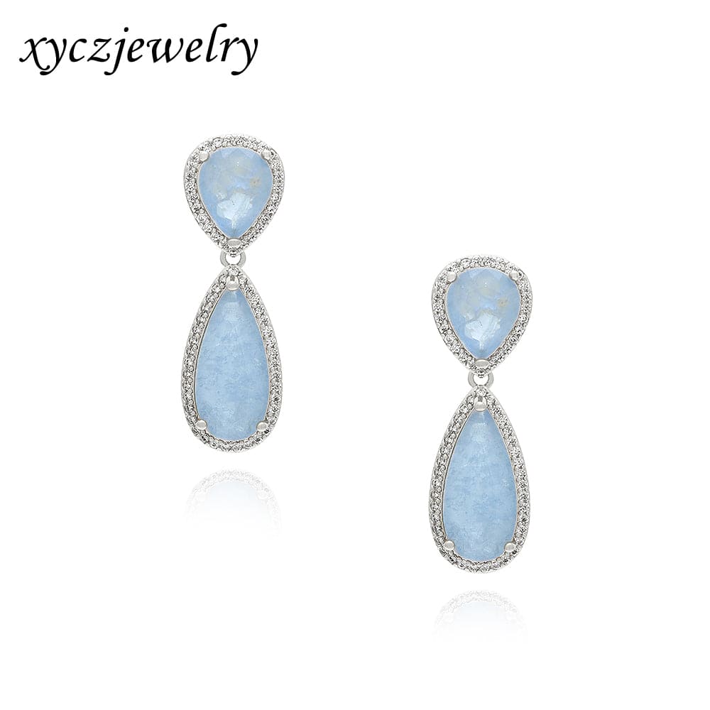 Pedra: Micro zircônia cristal e fusion natural formato gota azul