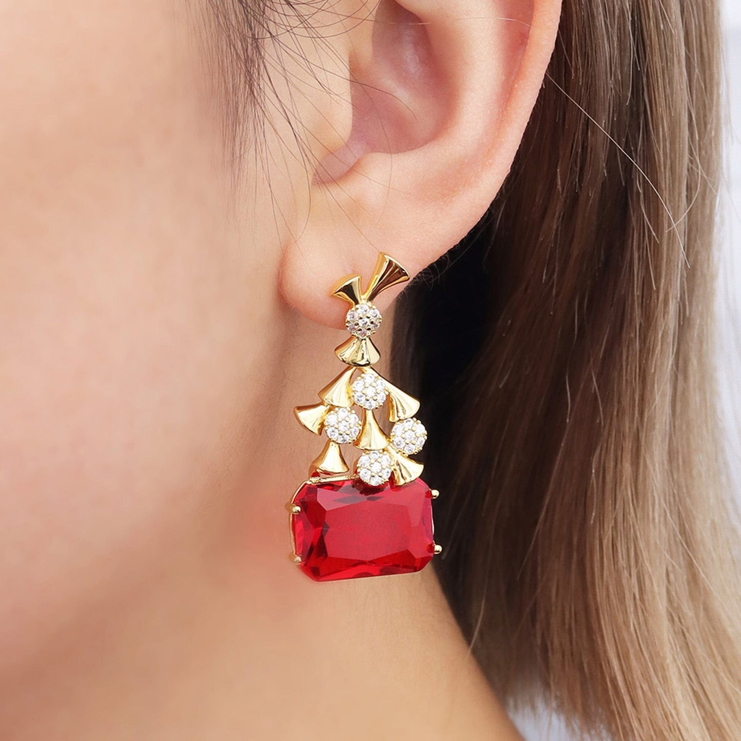 Brinco em latão de alta fusão cravejado manualmente com micro zircônia 5A premium e vidro lapidado, nas opções de banho Ouro 18k, Ródio branco ou Bruto.