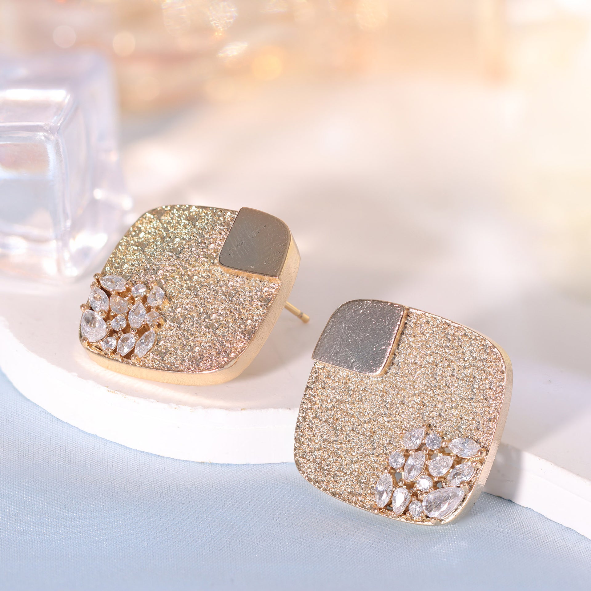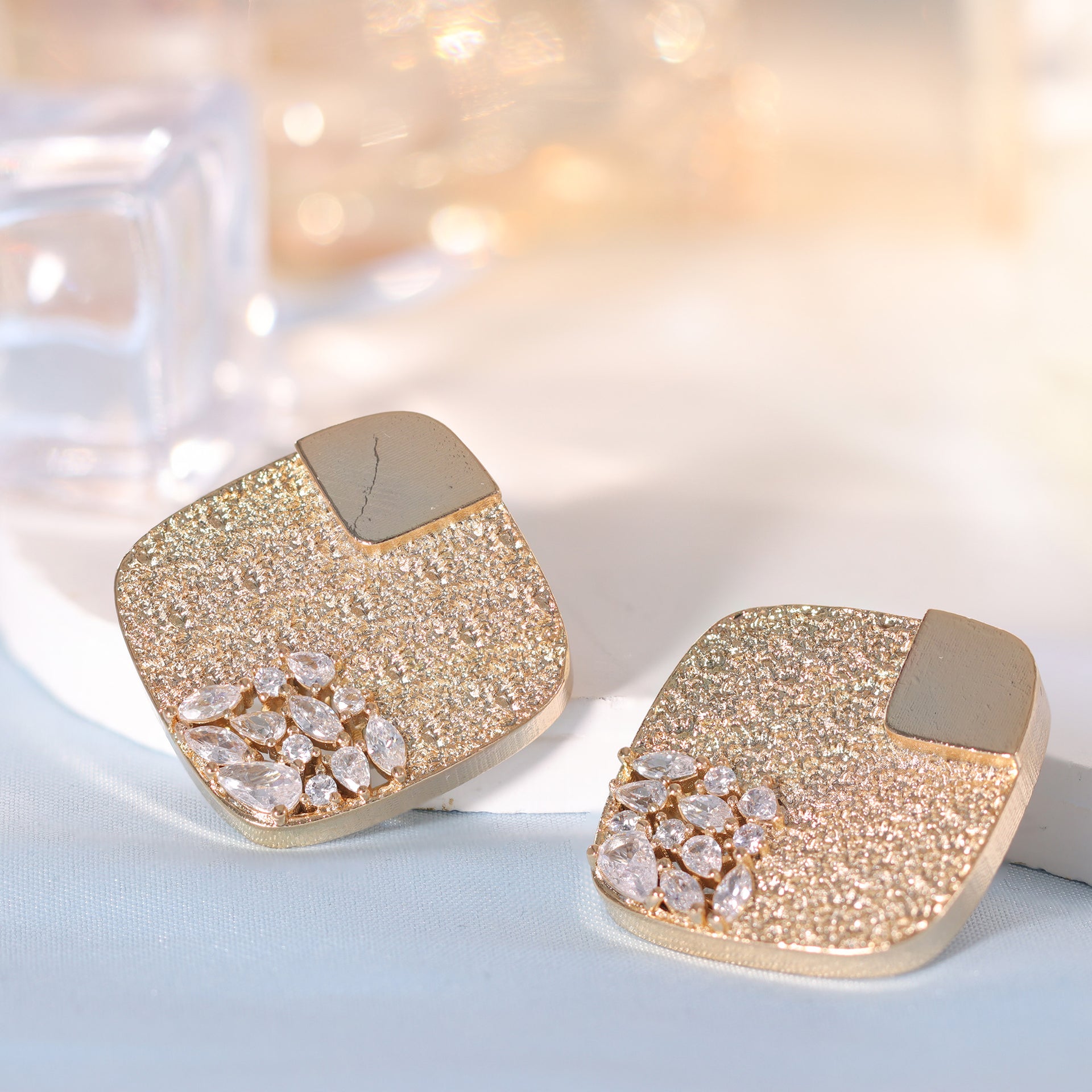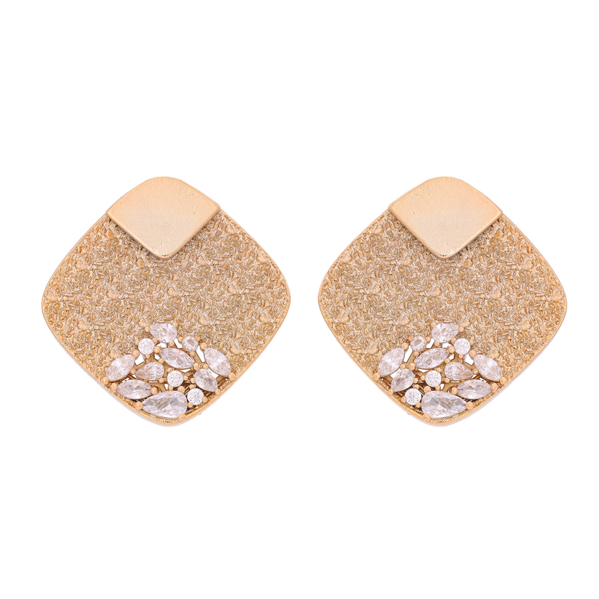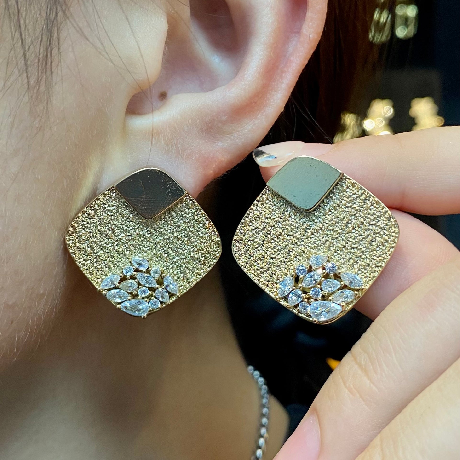 Brinco Losango em latão de alta fusão cravejado manualmente com micro zircônia 5A Premium, nas opções de banho Ouro 18k.