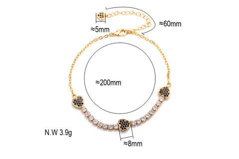 Pulseira em latão de alta fusão cravejado manualmente com micro zircônia 5A Premium, nas opções de banho Ouro 18k, Ródio branco ou Bruto.