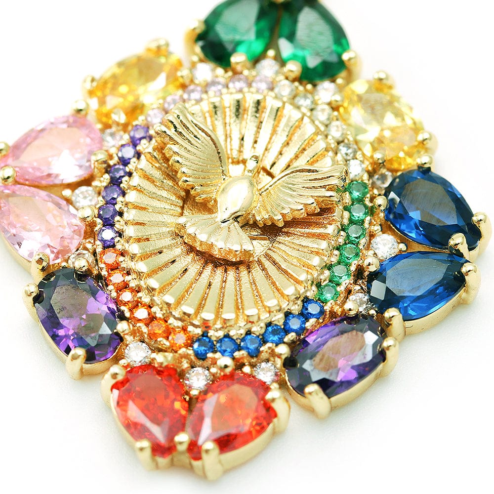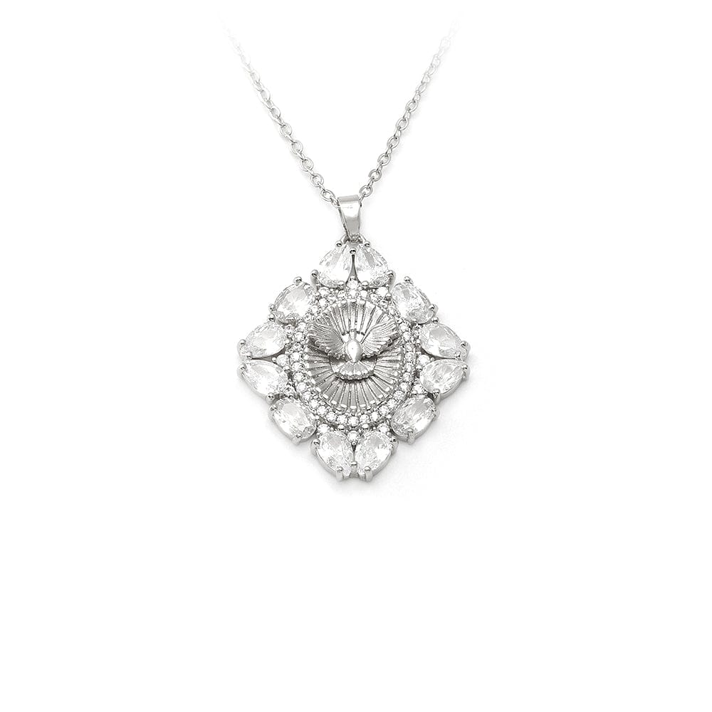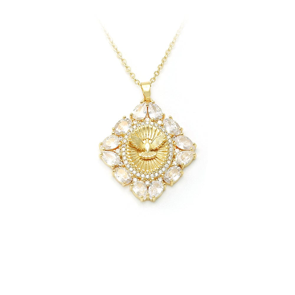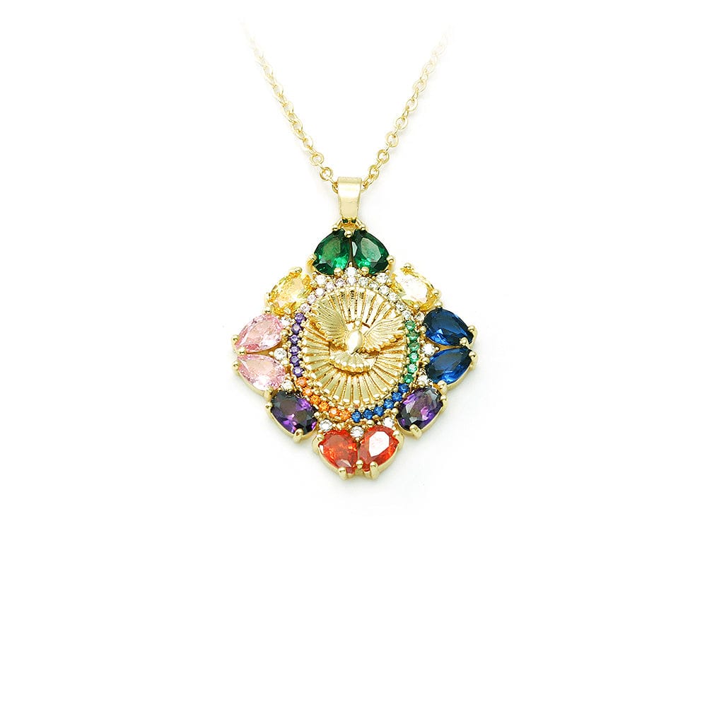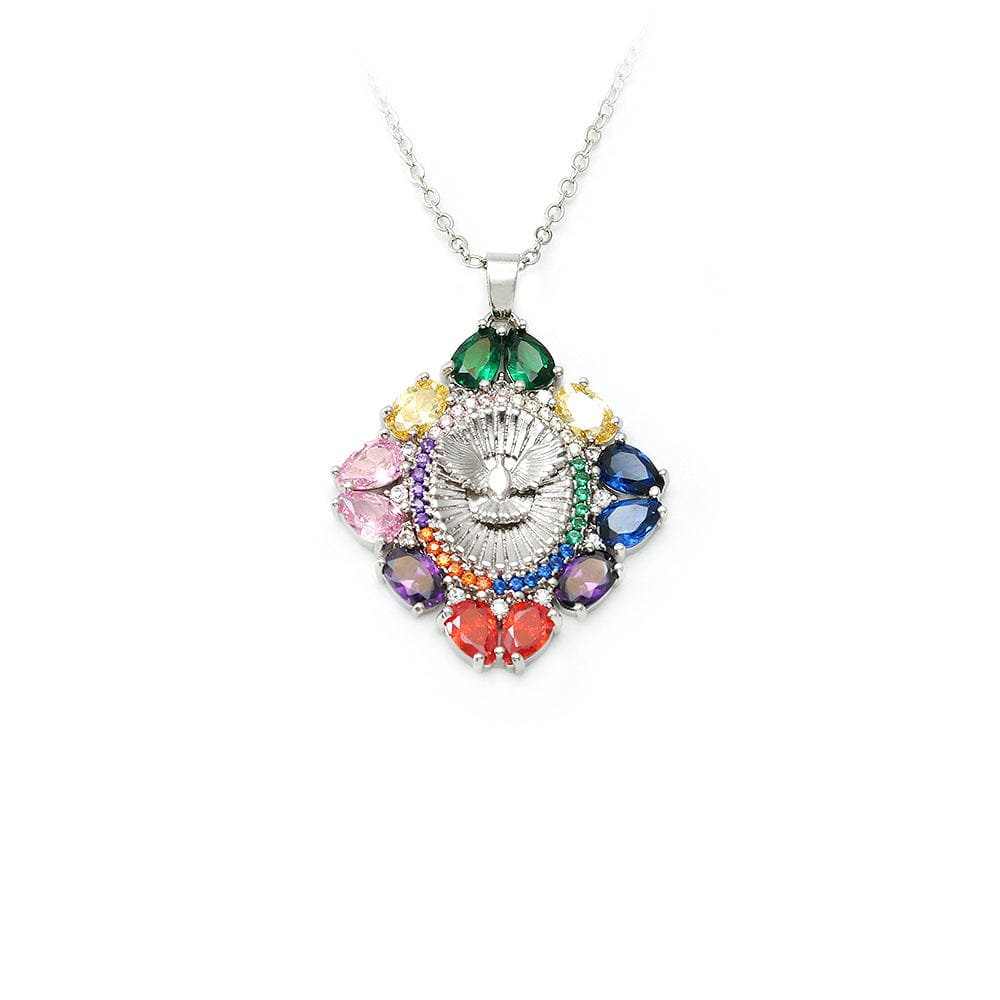 Colar em latão de alta fusão cravejado manualmente com micro zircônia 5A e vidro lapidado, nas opções de banho Ouro 18k, Ródio branco ou Bruto.
