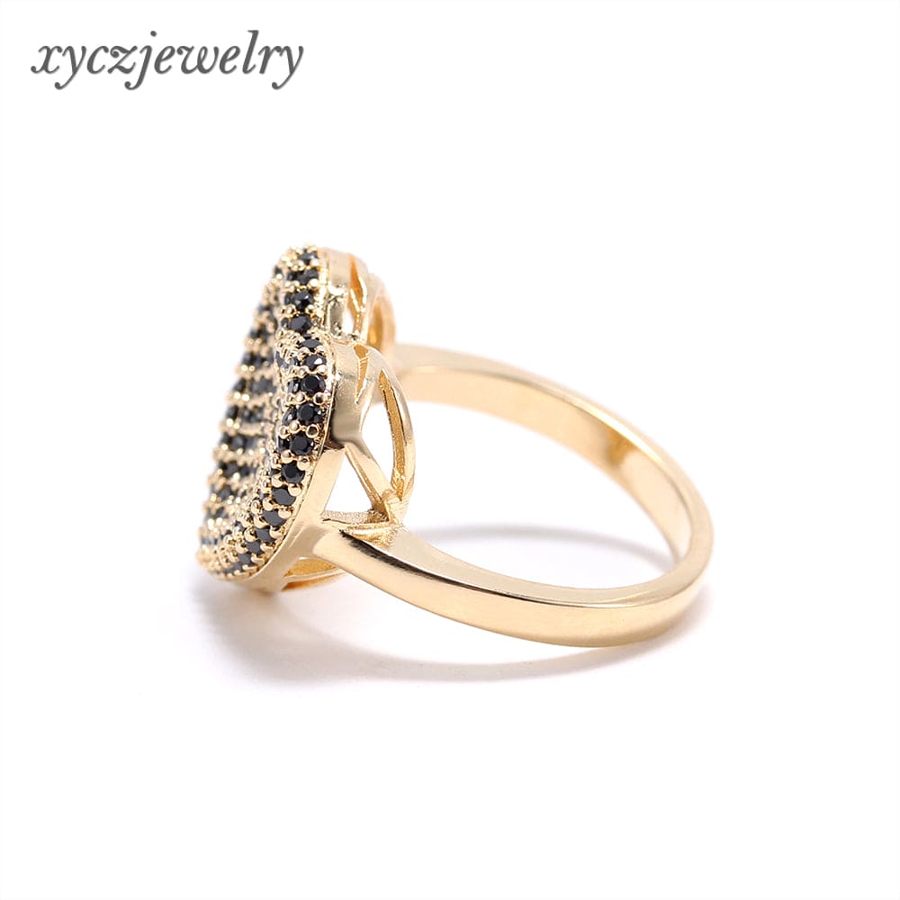 Anel em latão de alta fusão cravejado manualmente com micro zircônia 5A Premium, nas opções de banho Ouro 18k, Ródio branco ou Bruto.