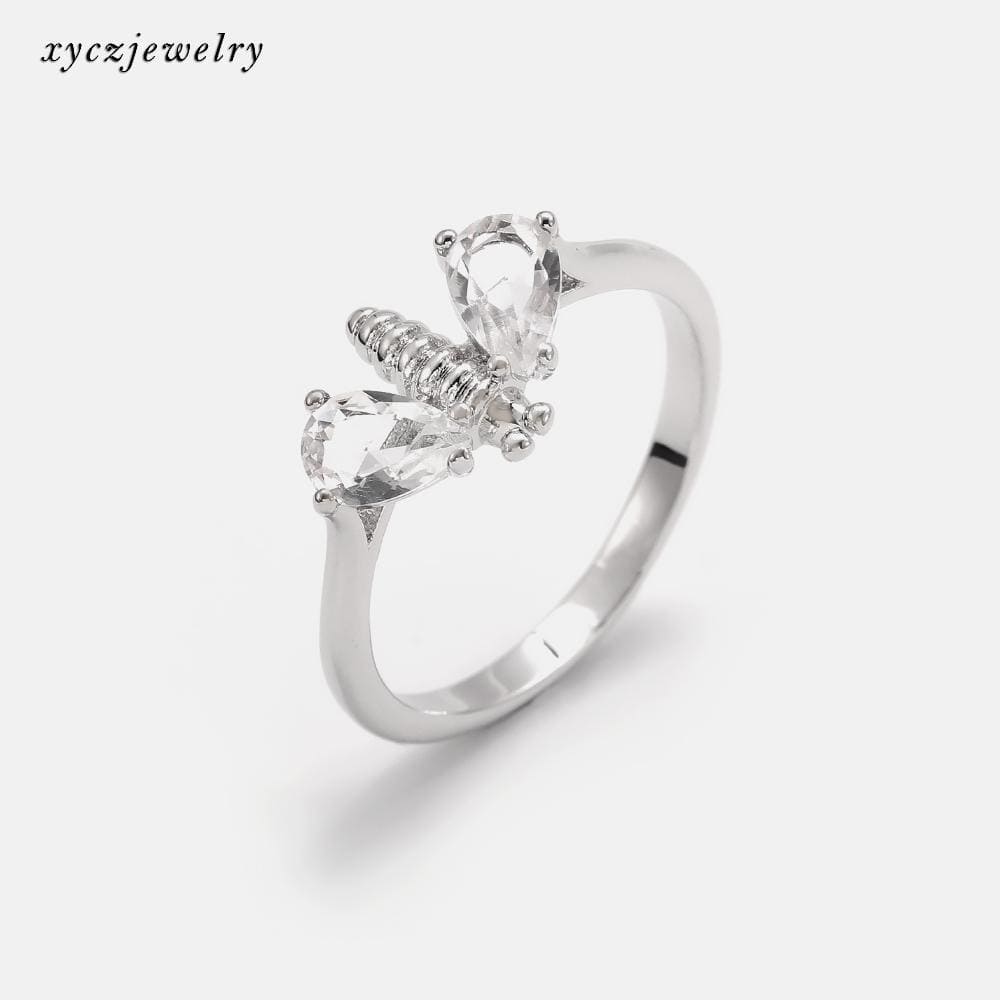 Anel de alta fusão cravejado manualmente com zircônia 5A formato de gota, nas opções de banho Ouro 18k, Ródio branco ou Bruto.