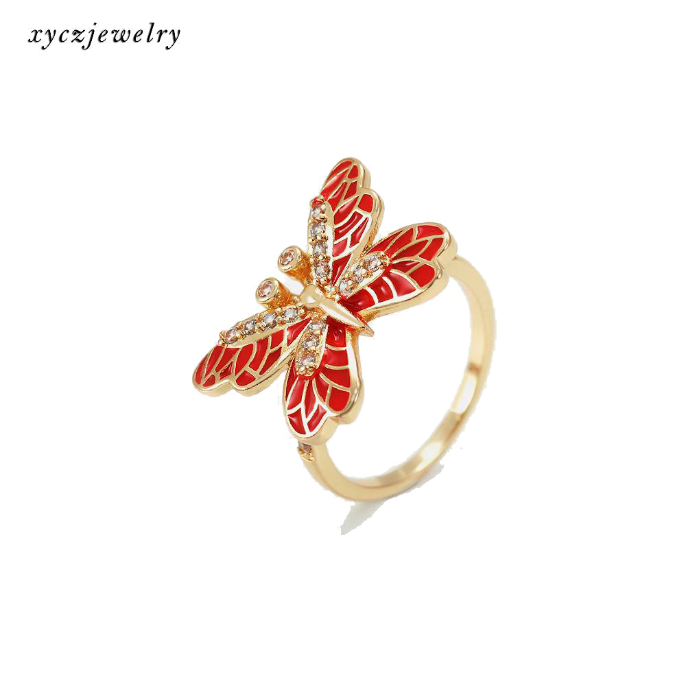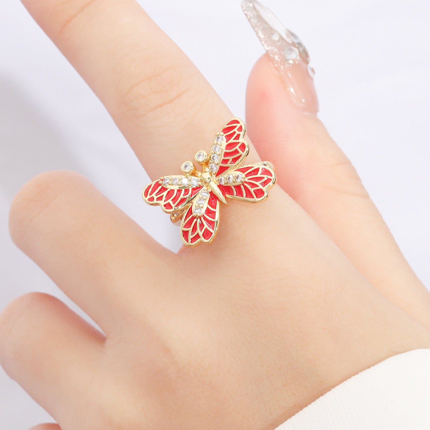Anel borboleta com resina vermelha no atacado - XYS100963