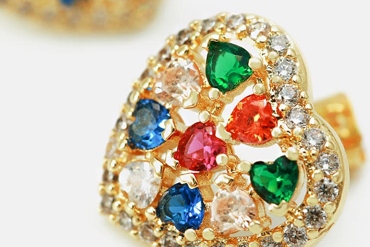 Brinco em latão de alta fusão cravejado manualmente com micro zircônia 5A e zircônia , nas opções de banho Ouro 18k, Ródio branco ou Bruto.