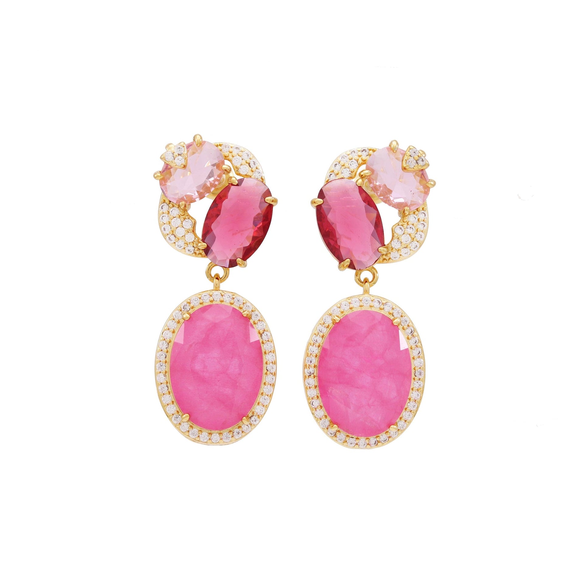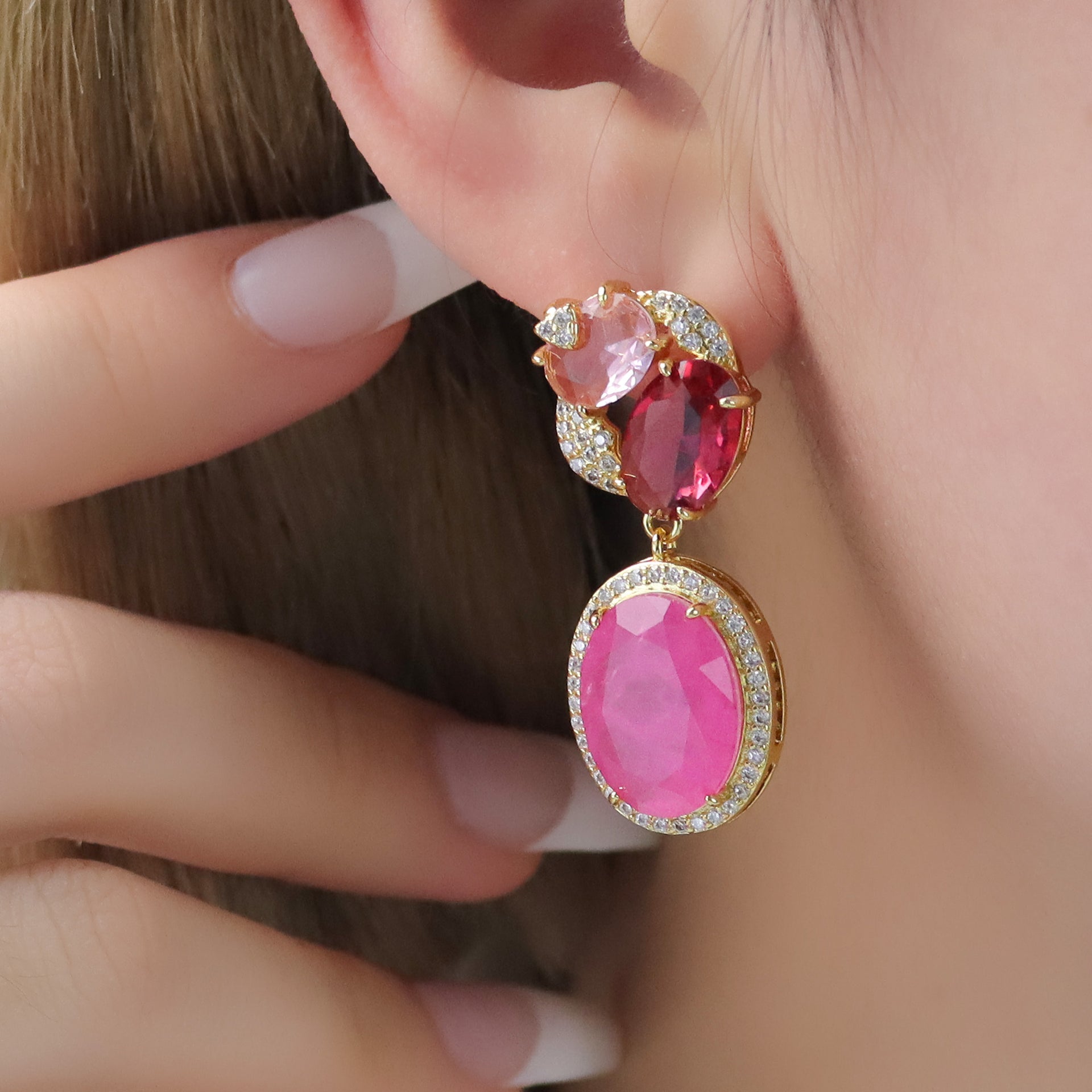 Brinco em latão de alta fusão cravejado manualmente com micro zircônia 5A premium e vidro lapidado e pedra fusion , nas opções de banho Ouro 18k, Ródio branco ou Bruto.
