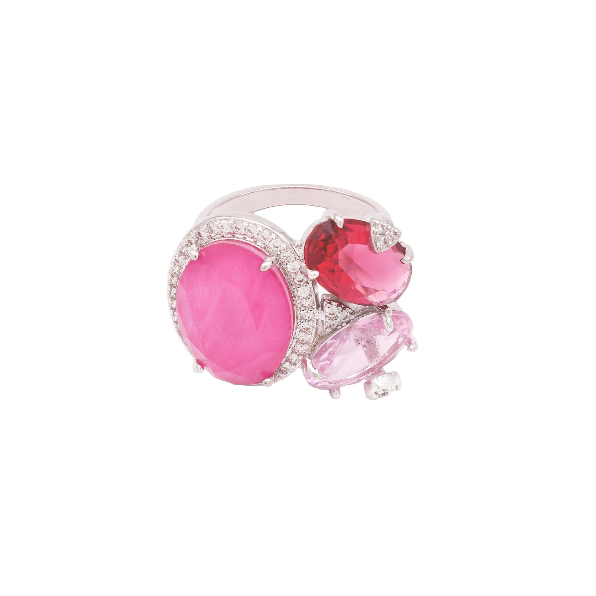 Anel em latão de alta fusão cravejado manualmente com micro zircônia 5A premium e vidro lapidado e pedra fusion , nas opções de banho Ouro 18k, Ródio branco ou Bruto.