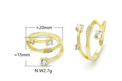 Compre anel ponto de luz triplo com aro meio aberto no atacado para revenda com a melhor pedra de zircônia do mercado, a zircônia 5A, banho de Ouro 18K e garantia de 1 ano direto da fábrica. Tudo com a Xingyu, a marca de semijoias para o atacadista que mais cresce no mercado.